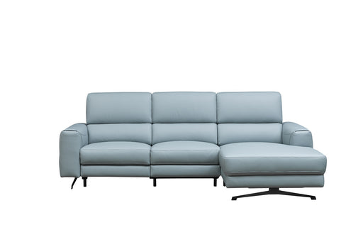 A&M Discount FurnitureOriginal price $2,200.00 - Original price $2,200.00Original price$2,200.00$2,200.00 - $2,200.00Current price $2,200.00| /A modern light-blue recliner sectional sofa with clean lines, plush cushions, and a right-side chaise, supported by sleek black metal legs.