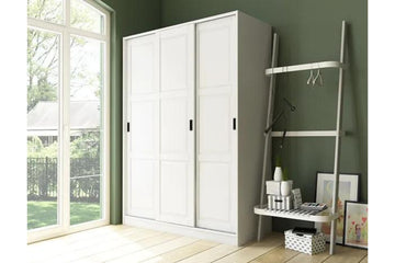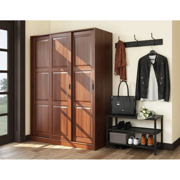 5673 - 100% Solid Wood 3-Sliding Door Wardrobe Armoire, Mocha