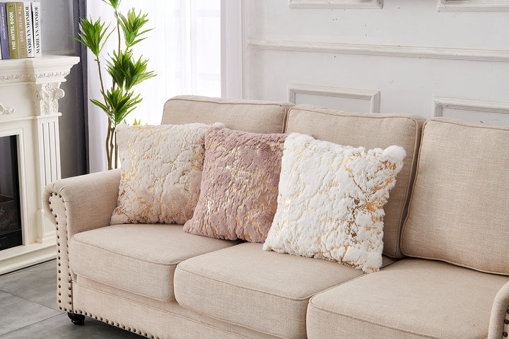 Agnes Luxury Chinchilla Faux Fur Gilded Pillow (22 In. x 22 In.)